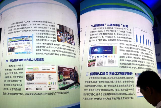 省級(jí)展區(qū)和11個(gè)市級(jí)展區(qū)集中展示了省、市、縣、校四級(jí)基礎(chǔ)教育信息化的優(yōu)秀案例和成功經(jīng)驗(yàn),全面反映各地信息技術(shù)在深度應(yīng)用、機(jī)制創(chuàng)新、精準(zhǔn)扶貧、推進(jìn)公平和提高質(zhì)量等方面取得的成效和進(jìn)展。48家企業(yè)通過(guò)現(xiàn)場(chǎng)互動(dòng)體驗(yàn)、新技術(shù)應(yīng)用推介、新產(chǎn)品應(yīng)用說(shuō)明等形式,展示為中小學(xué)教育教學(xué)信息化開(kāi)發(fā)的產(chǎn)品和服務(wù),展示其信息技術(shù)及教學(xué)應(yīng)用的新理念、新技術(shù)、新成果。